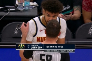 GIF-卡梅隆·约翰逊对卡斯尔犯规,裁判回放补吹技术犯规