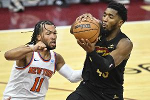 本场比赛过后,尼克斯遭遇三连败,战绩48胜28负,若骑士今天战胜湖人取得三连胜,战绩就将和尼克斯持平。