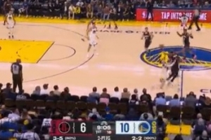 篮球勇士队vs老鹰格林三分