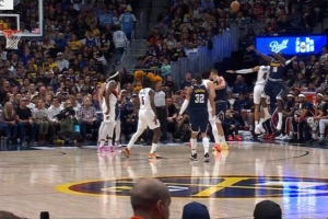 GIF-小哈达威三分被犯规 开拓者挑战