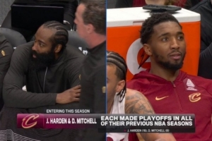 转播方晒纪录:哈登和米切尔生涯从未缺席过季后赛