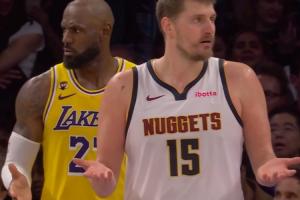 一时瑜亮!约基奇与詹姆斯两人同时摊手 表达对判罚的不满!